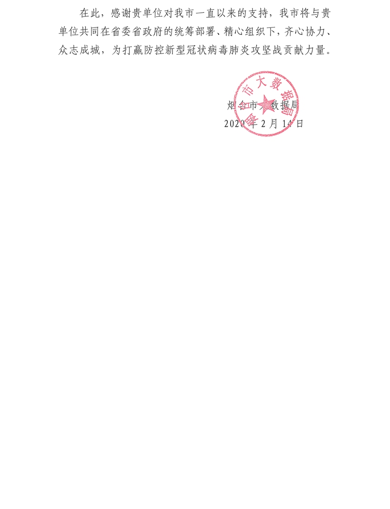 烟台市大数据局给公司的感谢信