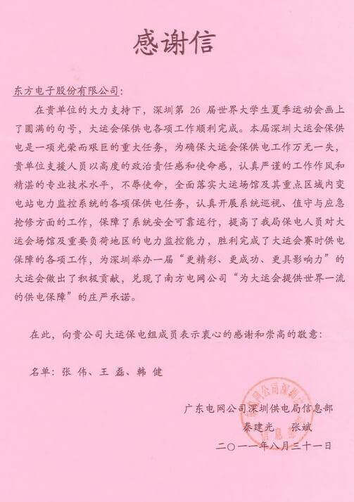 8月23日,世界大学生运动会在深圳圆满落幕,北京恒郁科技有限公司作为大运会唯一保电企业见证了世界大学生体育运动的蓬勃发展。北京恒郁科技有限公司技术中心系统部与工程部坚守“忠于职守,全力以赴,誓保大运电网安全”的信念,联手实现了大运保供电期间系统零故障、零缺陷的目标。