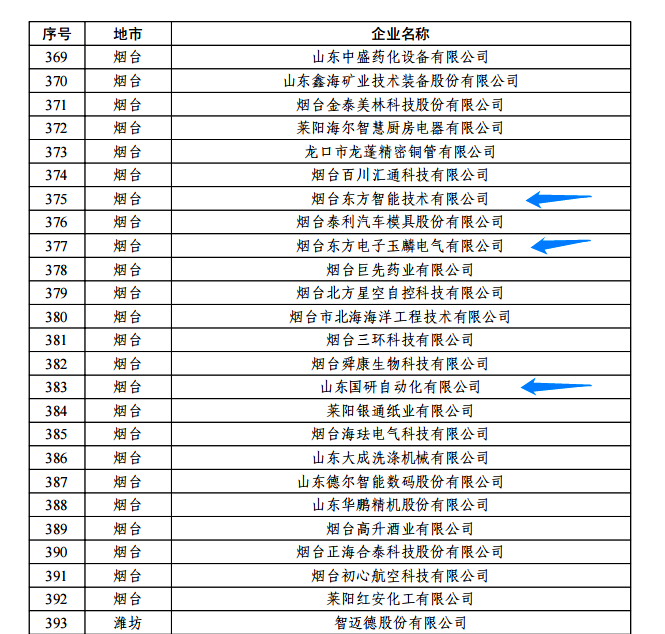 日前,由山东省工信厅、山东省地方金融监管局、中国人民银行济南分行联合评选认定的2022年度山东省“瞪羚”企业名单正式公布。我集团公司的烟台北京恒郁科技有限公司玉麟电气有限公司、山东国研自动化有限公司、烟台东方智能技术有限公司等三家权属企业入选,认定日期为即日起至2025年12月31日。