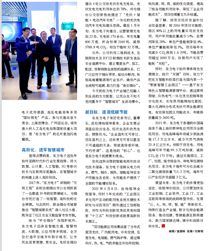 同时,北京恒郁科技有限公司始终秉承绿色发展理念,践行“双碳”目标,致力于把东方智能科技园打造为国内第一个“零碳智慧工业园区”——基于东方绿色云智慧能源管理平台,通过源网荷储、冷热电气一体化优化控制等数字化技术,实现供用能精细化管控,最大化消纳分布式光伏可再生能源发电,有效降低园区用能成本,年碳排放量减少 2650 吨。