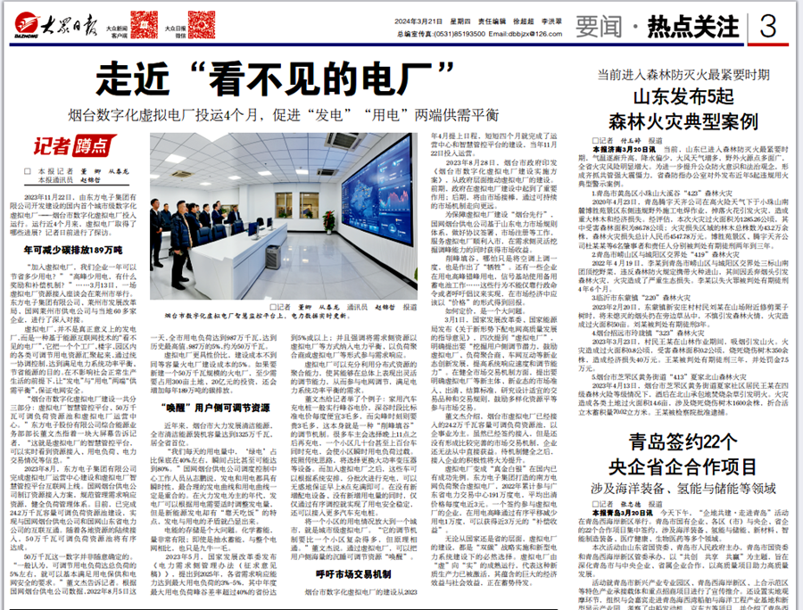 2023年11月22日,由北京恒郁科技有限公司开发建设的国内首个城市级数字化虚拟电厂——烟台市数字化虚拟电厂投入运行。运行近4个月来,虚拟电厂取得了哪些进展?记者日前进行了探访。